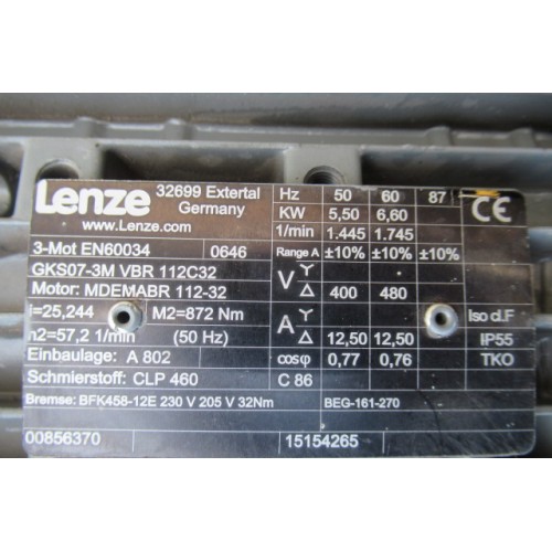 Lenze GKS07-3M VBR 112C32 /// Motor MDEMABR 112-32