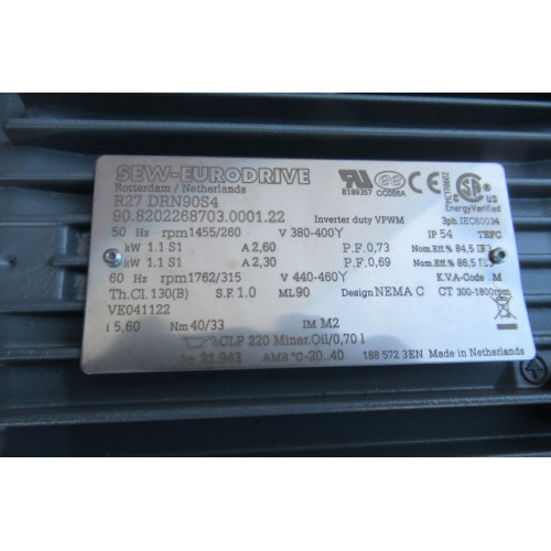 260 RPM 1,1 kW Asmaat 25 mm IE3. Unused