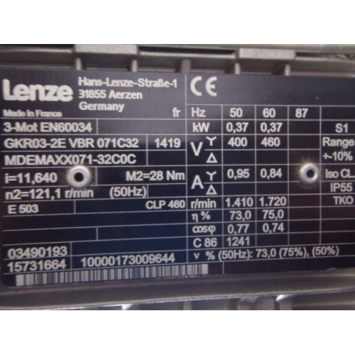 121 RPM 0,37 KW LENZE, Drives 8400 Motec NEW