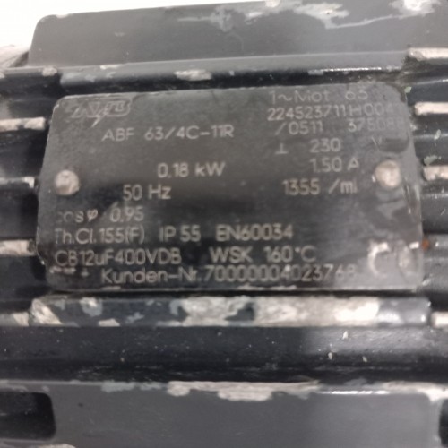 .0,18 kW 1335 toeren 1 fase 230V asmaat 11mm. Used