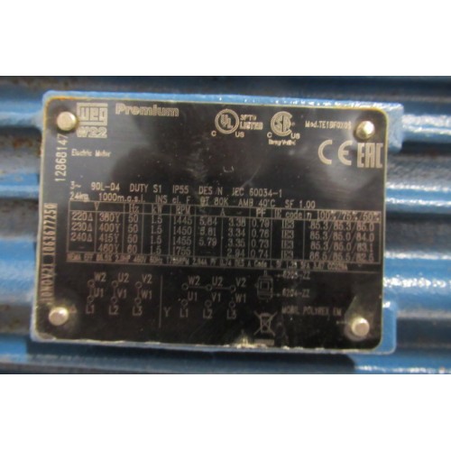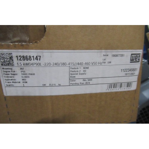 .1,5 KW 1450 RPM WEG W22 asmaat 24 mm IE3. Unused.