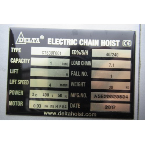 Kettingtakel 1000 kilo - hefhoogte 300 cm - 3 fase 400 V. Used