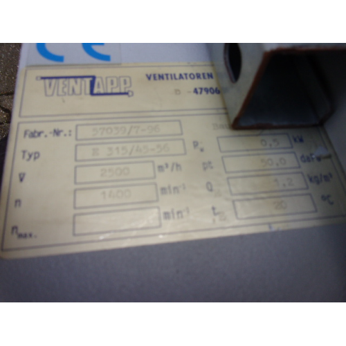 Radiaal ventilator 1,1 KW 1400 RPM, used.