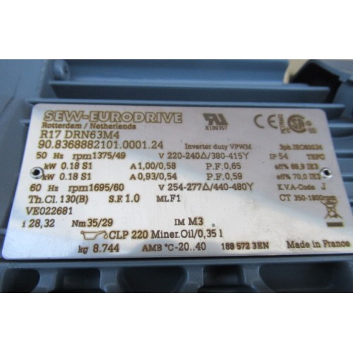 49 RPM 0,18 KW Asmaat 20 mm IE3. Unused