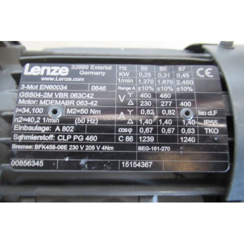 | Type | Lenze GSS04-2M VBR 063C42 Motor MDEMABR 063-42 |