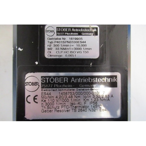 Stöber Drehstrom-Servomotor ES44 1458753/000/000-010. Unused.
