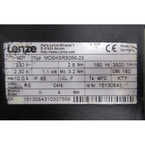 330 volt - 190 Hz - 3800 RPM - 1,1 kW 2.8 Nm