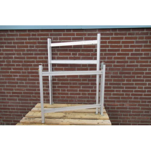 Aluminium in hoogte verstelbare steunpoot / schraag t.b.v. Rollenbaan Transportbaan.