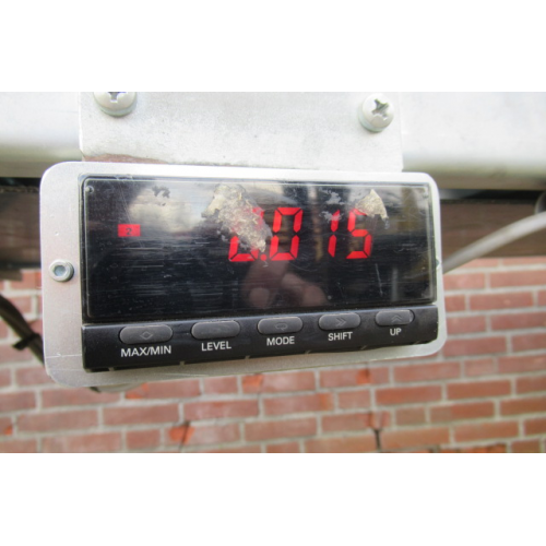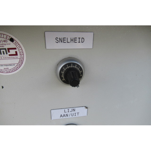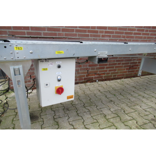 38 cm breed lengte 400 cm, snelheid regelbaar. Gebruikt.
