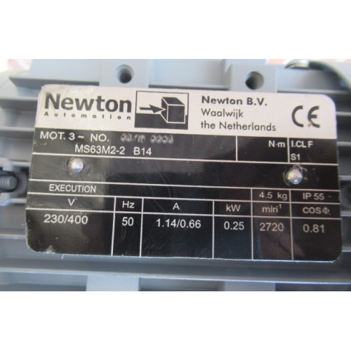 Aansluitspanning : 3 fase 400 volt - 0,25 kW - 388 RPM