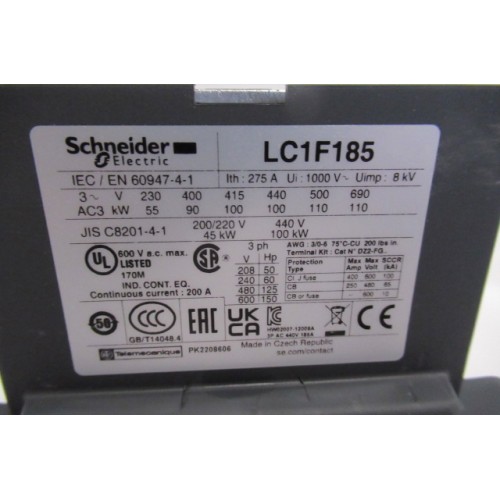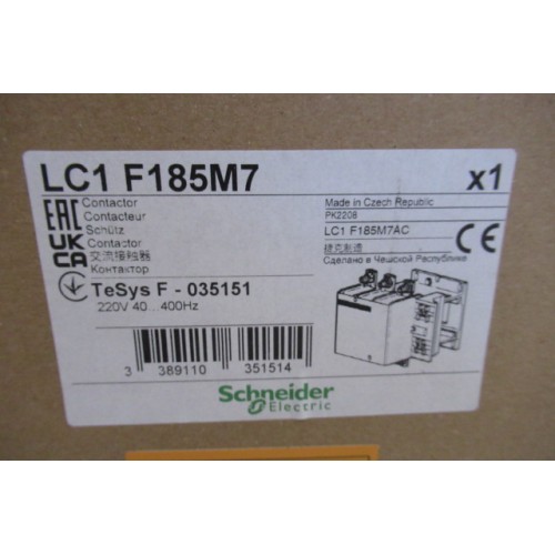 NEW Schneider LC1 F185M7 3 Pole 180A 100kW 220 VAC Contactor