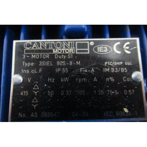 .0,37 kW 705 rpm B35 Asmaat 24 mm IE3 . Used once for testing.